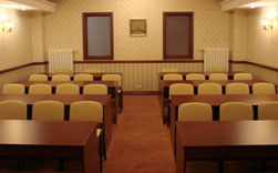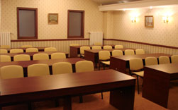 Интерьер конференц-зала решен в строгом стиле. Предусмотрены кейтеринг-услуги любого уровня сложности – от небольшого кофе-брейка с лёгкими закусками до масштабного банкета для высокопоставленных гостей.